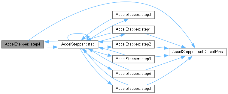 Called to execute a step on a 4 pin half-steper motor. Only called when a new step is required. Subclasses may override to implement new stepping interfaces. The default sets or clears the outputs of pin1, pin2, pin3, pin4.