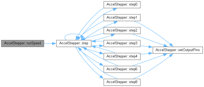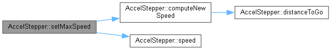 Sets the maximum permitted speed. The run() function will accelerate up to the speed set by this function. Caution: the maximum speed achievable depends on your processor and clock speed. The default maxSpeed is 1.0 steps per second.
