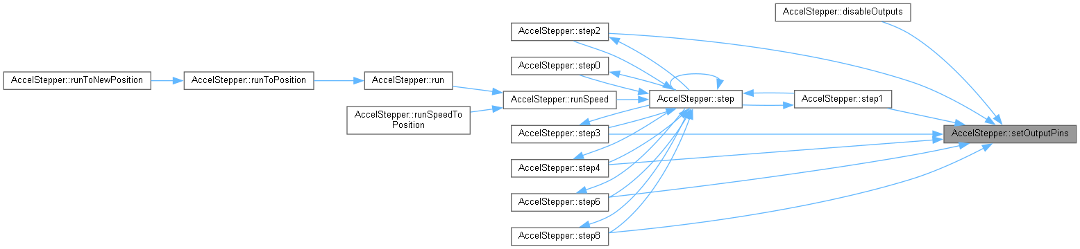 Low level function to set the motor output pins bit 0 of the mask corresponds to _pin[0] bit 1 of the mask corresponds to _pin[1] You can override this to impment, for example serial chip output insted of using the output pins directly