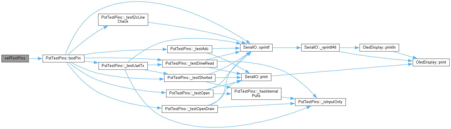Uses the PstTestPins facility to verify that each I2S, SPI, and I2C pin can be toggled or read as expected. Diagnostic messages identifying each pin and its function are printed via SerialIO.
